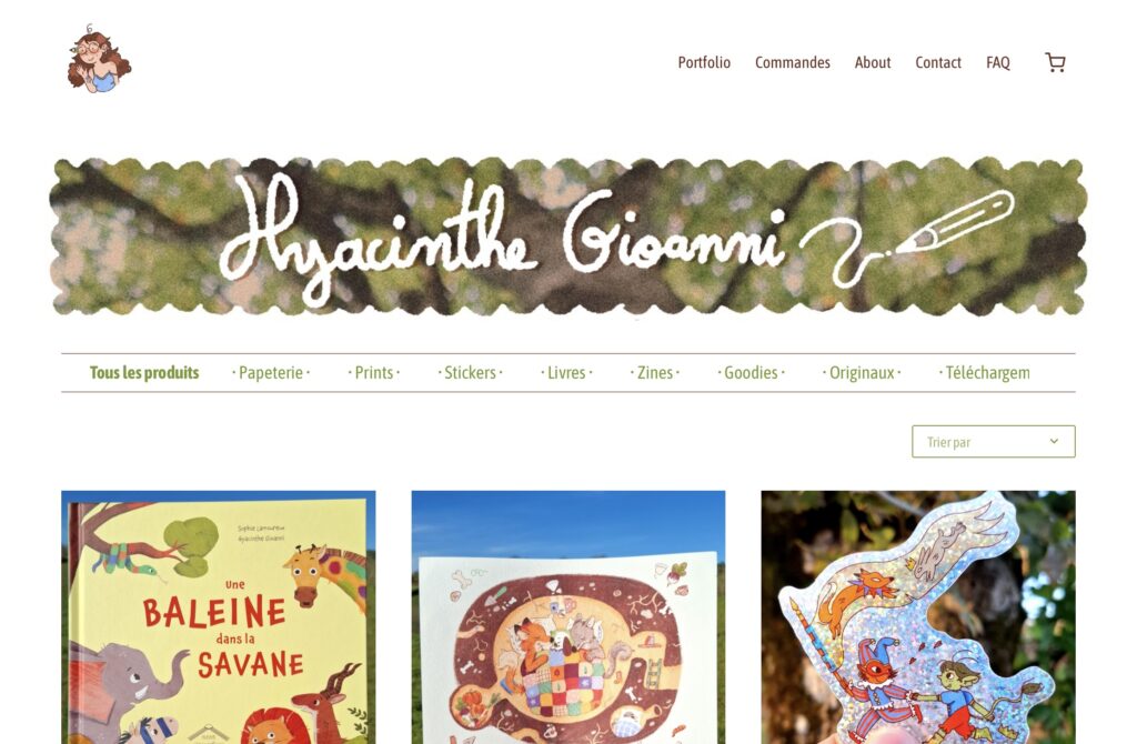 Je suis Hyacinthe, une artiste humaine française qui crée de ses dix doigts. Je passe mes journées à dessiner, imaginer des histoires et à me promener en forêt.